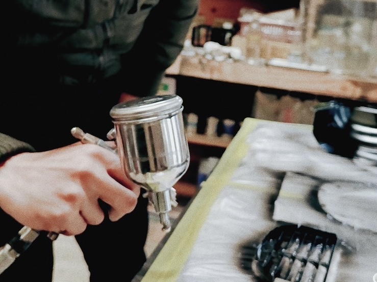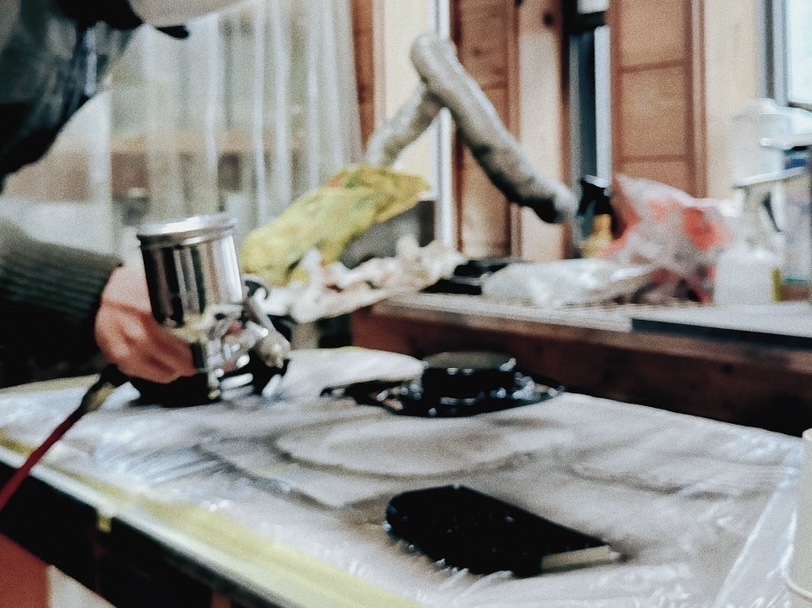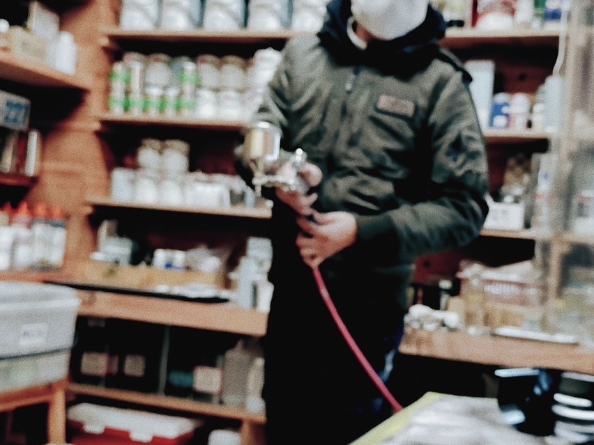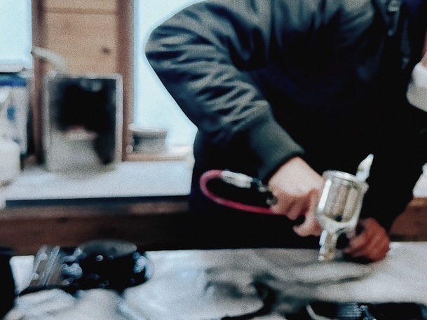 2024.11.12 開催レポート 【アルミ】応用講座 アルミ補修 応用講座を受講していただきました。補修歴 2年の現役リペア屋さんです。 スプレーガン 初心者なので、ガンの使い方はもちろんのこと コンプレッサー側の圧力 ガンのエアーと吐出の関係性 パターンなどを理解していただきながら、先ずは 小物の全塗装で慣れていただきました。 使用塗料は2液型 アクリルウレタンです。 最後はアルミサッシ シルバー系を補修していただきました。 缶スプレーとガンを使用した仕上がりの違いを理解していただけたと思います。