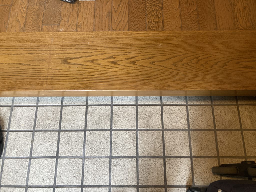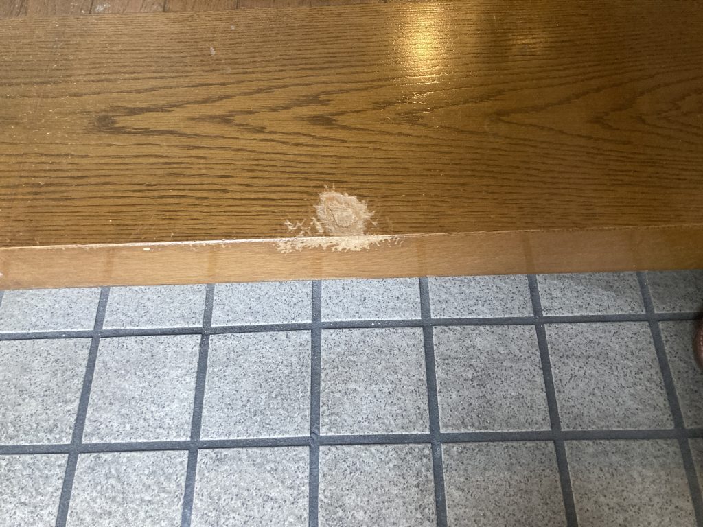 2024.09.29 講師 施工事例 【木材】応用講座 講師施工事例です。 玄関框 えぐれ傷 パテで下地調整 ベースカラー塗布 木目描き トップコート再生 ビフォー アフター この内容は木材補修応用講座で学べます。